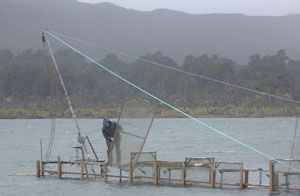 Today fishermen erect their stands in late August ready for opening day on the 1st of September. Fishermen fish their stands come rain, wind or shine for six hours of the incoming tide before lifting their net and returning with their catch to the camp. The whitebait are quickly "sorted" before being chilled in drainer buckets to allow water to escape.