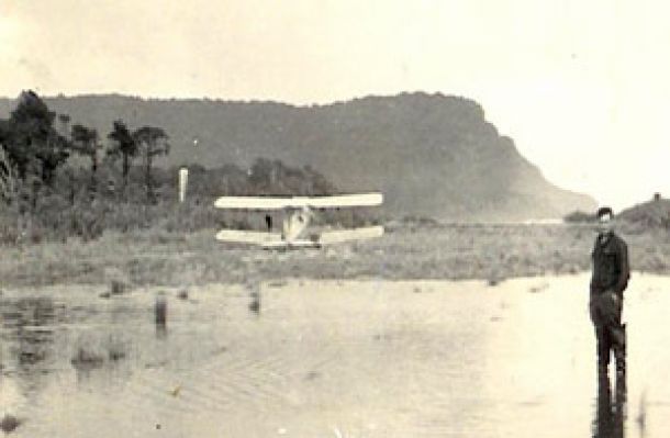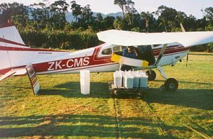 After three seasons and several extra efforts throughout the year the Cascade airstrip was ready for the first landing. In August 1954 a Miles Messenger flown by Des Nolan achieved this and marked the beginning of airfreighting whitebait from the Cascade River.
