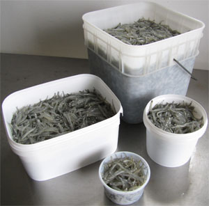 Cascade whitebait is packed in to plastic pottles and blast frozen to ensure no loss of quality occurs in the freezing process. Frozen orders are packed into polybins with slicker pads to ensure no loss of temperature during freighting. Clear or bar coded. Frozen whitebait is sold year round, subject to availability.