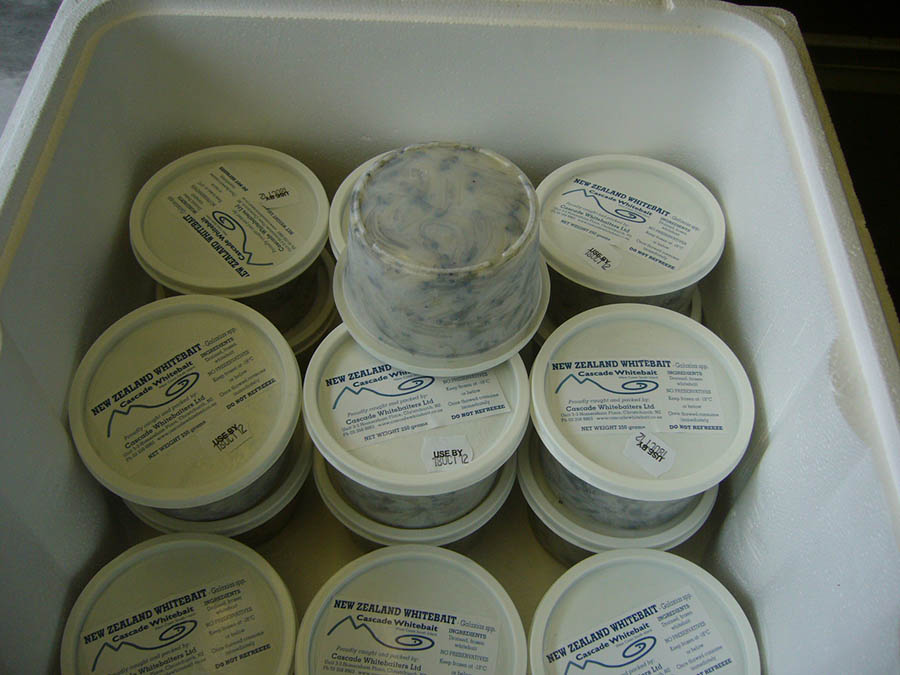 All whitebait products are over-night air freighted with Courier Post in polybins and chill packs.