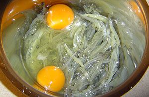 Method: Beat together the eggs, milk, cream, dill pepper, salt and lemon zest, then stir in the whitebait.